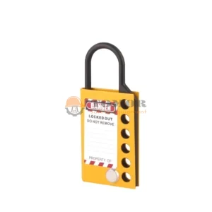 Khóa nhóm bằng nhôm có nhãn cảnh báo BD-K51 thuộc hasp lockout— giải pháp khóa an toàn cho quy trình LOTO, cho phép gắn đồng thời tối đa 6 ổ khóa, bề mặt phun nhựa chịu nhiệt, chống gỉ, bền lâu dài.